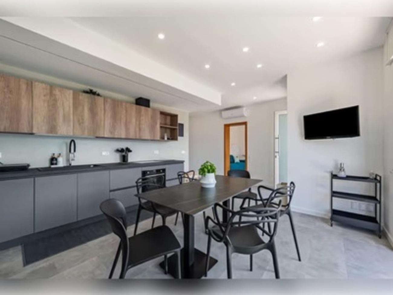 La cucina, vivibile e luminosa, è un vero spazio da condividere: grande tavolo da pranzo e una vista mozzafiato, con elettrodomestici di ultima generazione come lavastoviglie, ampio frigorifero con freezer e tutto il necessario per sentirsi come a casa. Il salotto completa l’atmosfera con due comodi divani, TV e anche giochi da tavola, ideali per trascorrere momenti piacevoli insieme dopo una giornata tra lago, natura e borghi.